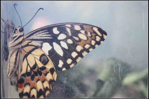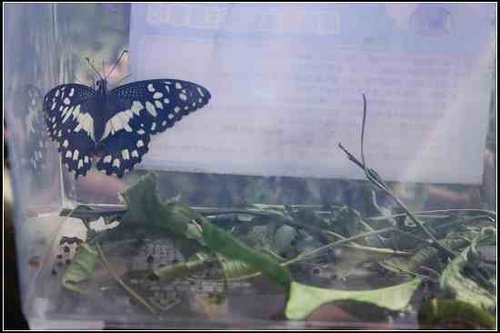 本來我已經不想理它,不知道它要搞自閉多久,結果就在收養蟲的第13天,上週三當我下午回家後,進門就發現陽台的透明飼養箱中,有一隻好漂亮的蝴蝶,這就是"破繭而出"啊! 真令人興奮。