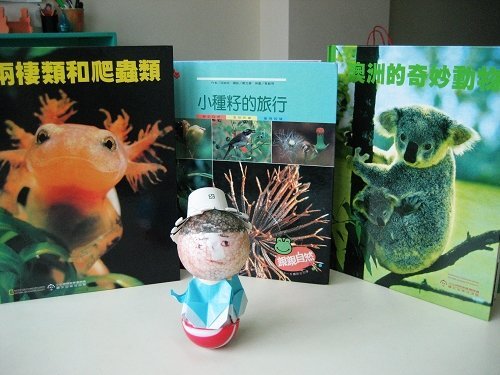 教室的兒童繪本已上架不少,下課時孩子都很愛去翻閱。其中幾套百科藏書,剛好適合補充課程的延伸知識,也算統整啦! 課本有「蒲公英」與「無尾熊」的課文,摺紙也教青蛙作法,這些書籍有大量圖片,很方便在課堂介紹給孩子們。