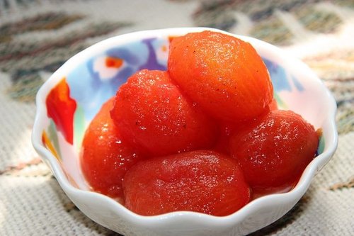 除了水果食用法外,這道以梅漬做法的番茄,很適合當前菜,作法簡單又耐放,是我一直很愛的開胃菜。